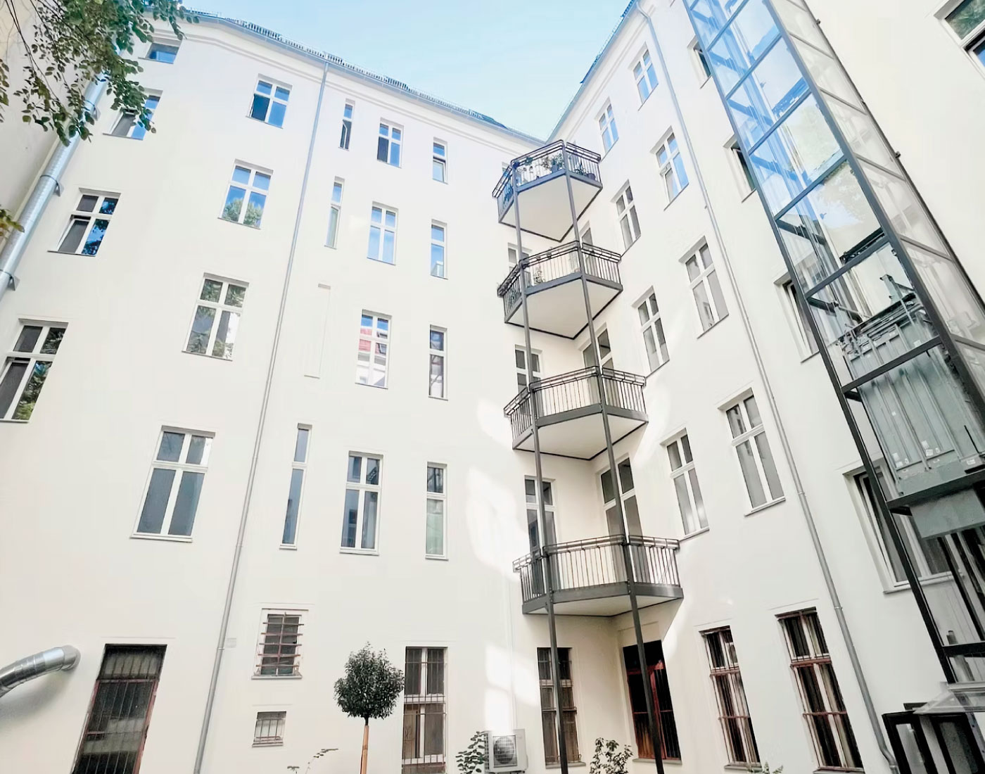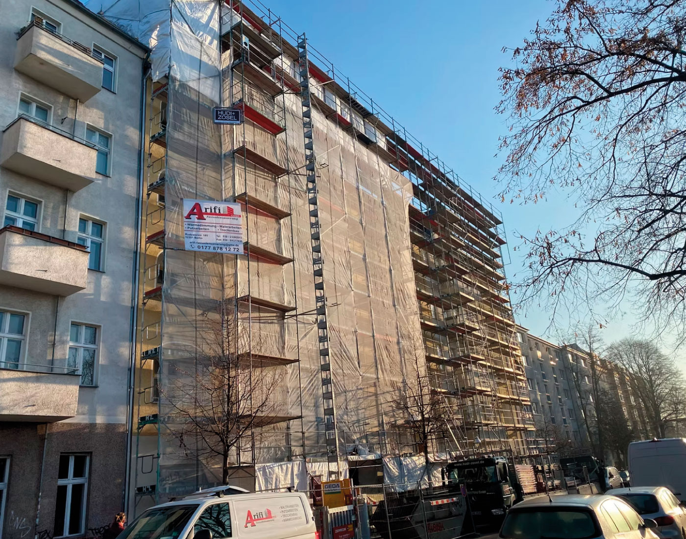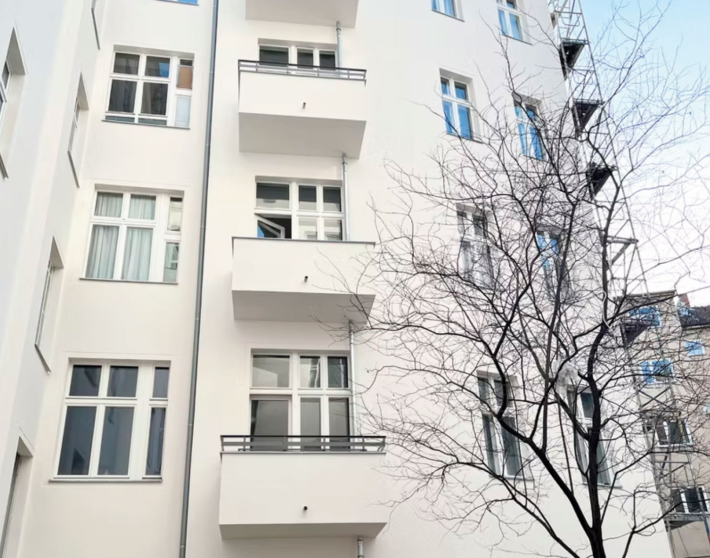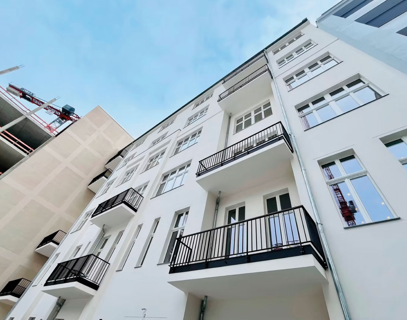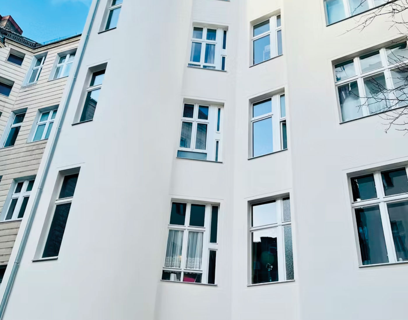 Nach Abschluss der Arbeiten präsentiert sich die Fassade klar strukturiert, farblich ausgewogen und dauerhaft geschützt. Das Gebäude wirkt wieder hochwertig, gepflegt und fügt sich stimmig in das Kreuzberger Straßenbild ein.