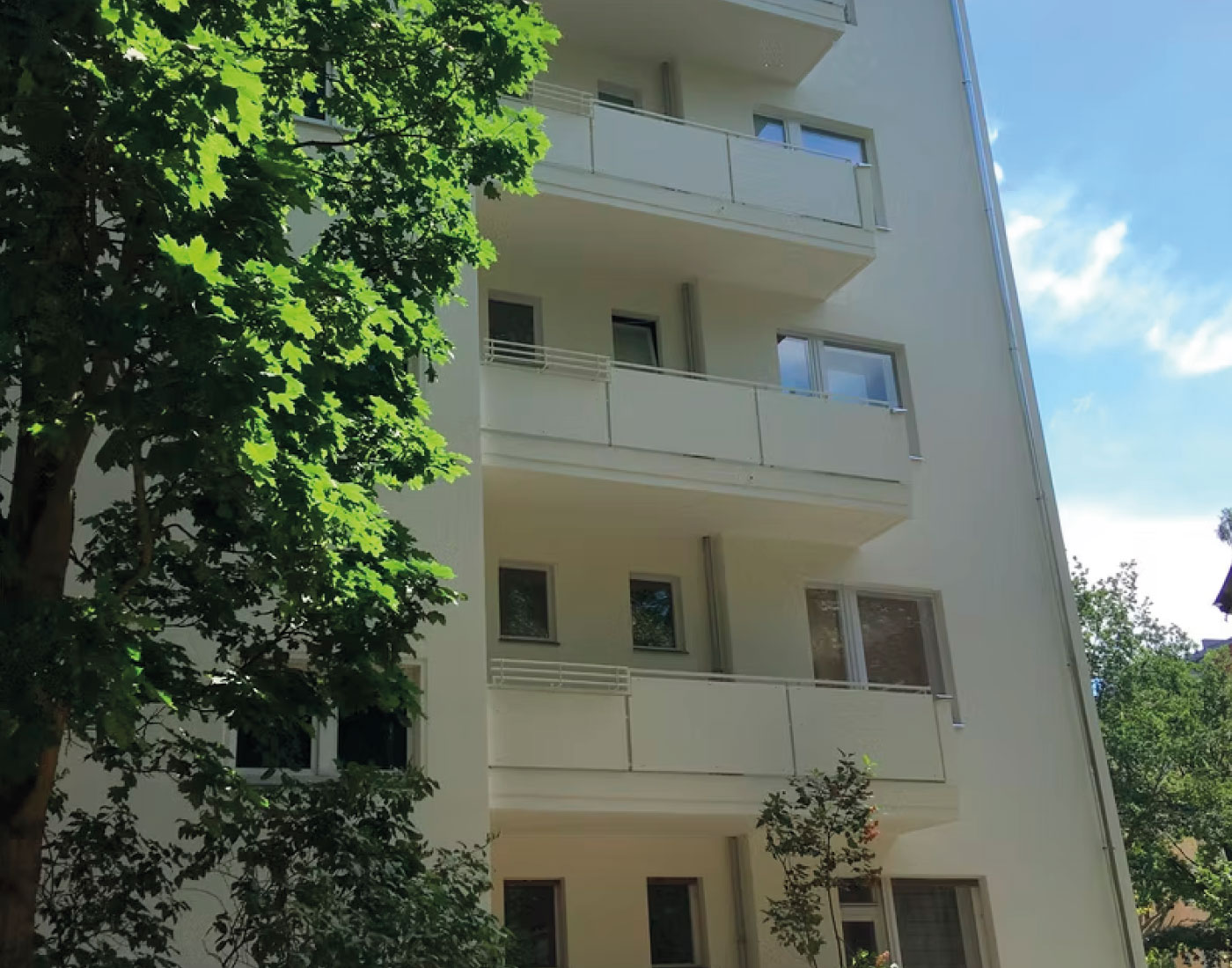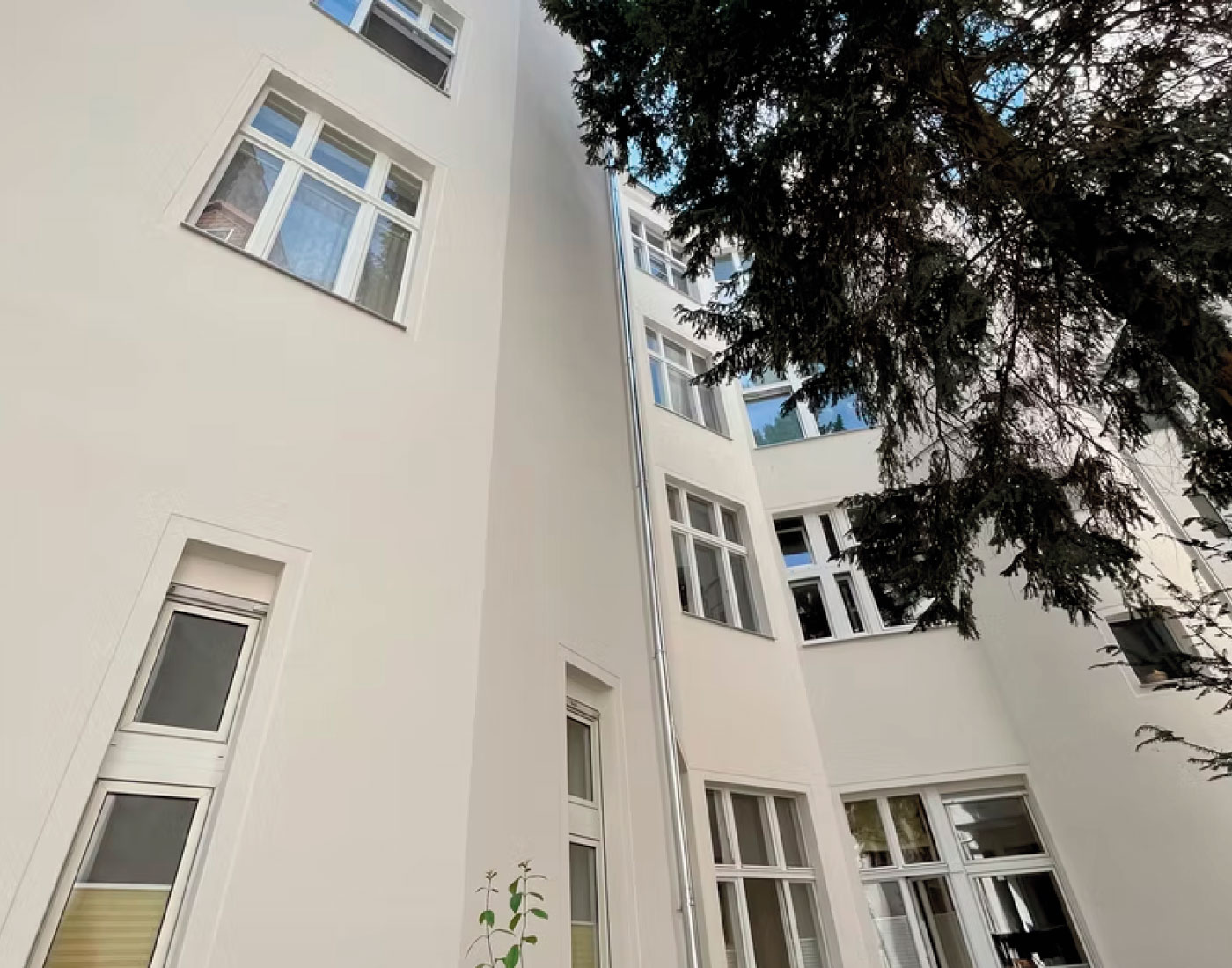 Die Fassade der Mariannenstraße 26 wurde umfassend saniert, um das Gebäude optisch zu beruhigen und technisch zu stärken. Nach der Reinigung und Ausbesserung der Oberflächen entstand ein ruhiges, modernes Fassadenbild, das die klare Linienführung betont und dem Objekt langfristige Stabilität sowie ein gepflegtes Erscheinungsbild verleiht.