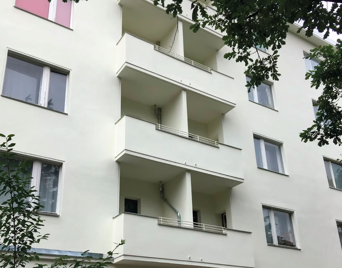 Die Fassade der Riehlstraße 13 wurde umfassend instand gesetzt, um das Gebäude optisch zu beruhigen und technisch zu stärken. Nach der Reinigung und Ausbesserung der Oberflächen entstand ein gleichmäßiges, modernes Fassadenbild, das die architektonischen Linien klar hervorhebt und dem Objekt langfristige Stabilität und Wertigkeit verleiht.